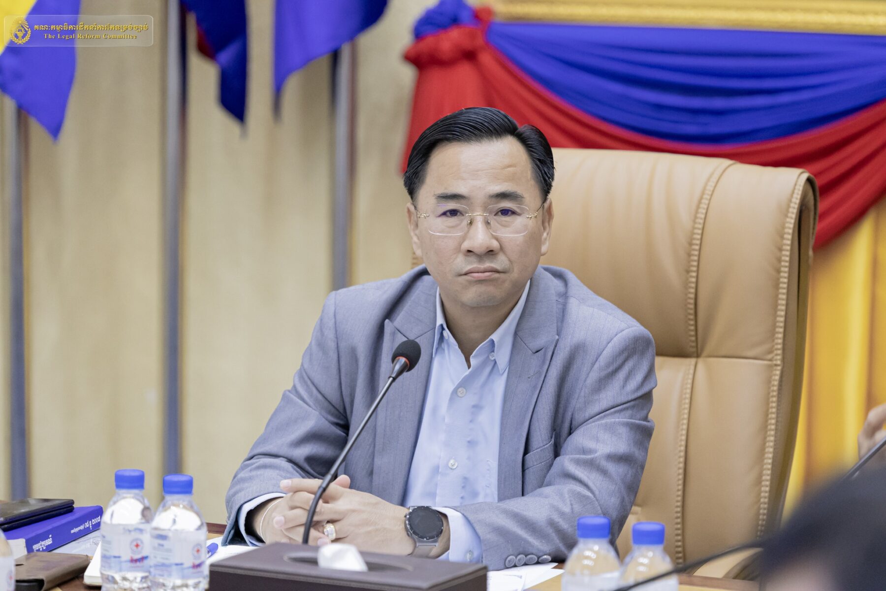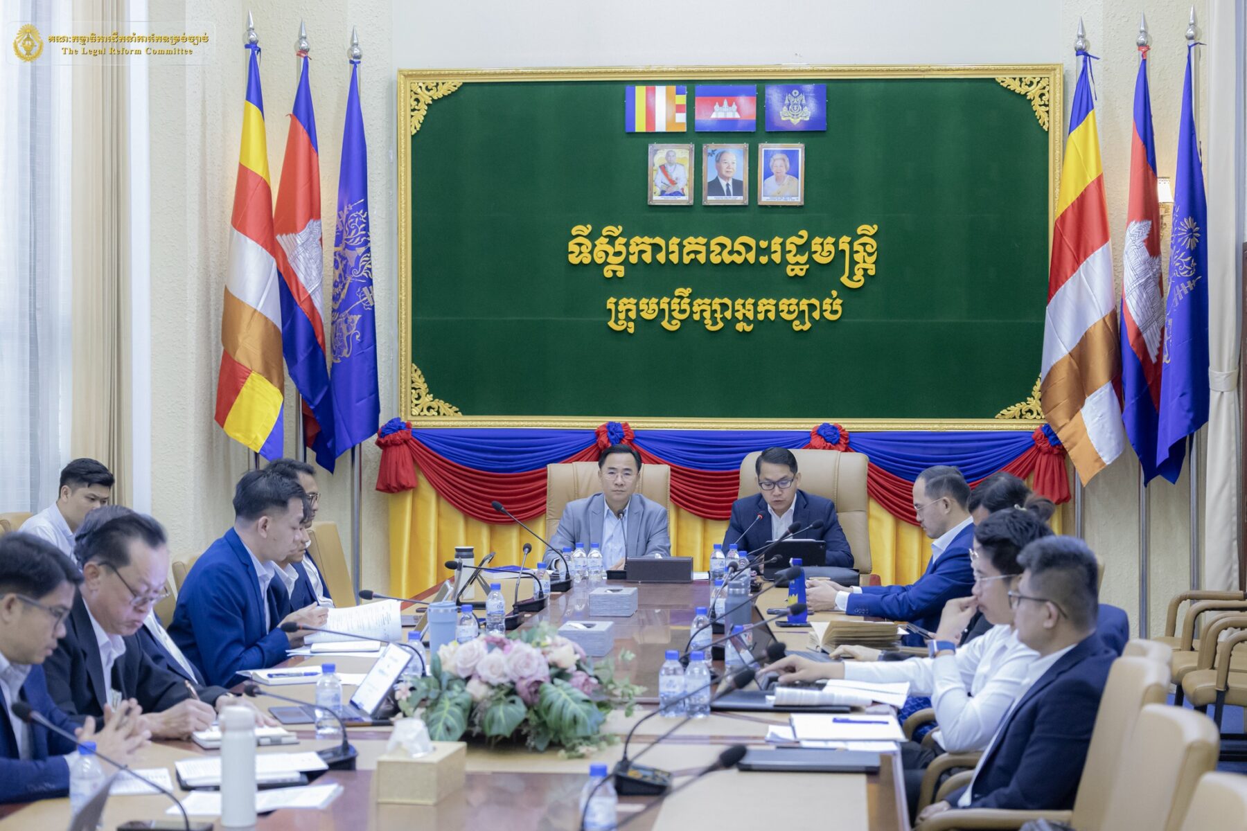 នាព្រឹកថ្ងៃព្រហស្បតិ៍ ២រោច ខែផល្គុន ឆ្នាំម្សាញ់ សប្តស័ក ពុទ្ធសករាជ ២៥៦៩ ត្រូវនឹងថ្ងៃទី៥ ខែមីនា ឆ្នាំ២០២៦, នៅទីស្តីការគណៈរដ្ឋមន្ត្រី, ឯកឧត្តម លី ច័ន្ទតុលា អនុប្រធាននិងជាអគ្គលេខាធិការ គ.ក.ច. និងជារដ្ឋលេខាធិការទីស្តីការគណៈរដ្ឋមន្ត្រី បានចាត់លោកស្រី ឡេង ចាន់ភួង ជំនាញការច្បាប់ (គ.ក.ច.) លោក អៀប សុធានី អនុប្រធាននាយកដ្ឋានគោលនយោបាយ និងផែនការ (អ.គ.ក.ច.) និងលោក មាឃ សីហា ជំនាញការច្បាប់ (គ.ក.ច.) ចូលរួមកិច្ចប្រជុំពិនិត្យ និងពិភាក្សាលើសេចក្តីព្រាងបឋមឯកសារទស្សនាទាននៃការចាត់ចែងក្រមរដ្ឋបាល និងសេចក្តីព្រាងមាតិការនៃក្រមរដ្ឋបាល ក្រោមអធិបតីភាព ឯកឧត្តមបណ្ឌិត ស៊ា ម៉ៅ រដ្ឋលេខាធិការទីស្តីការគណៈរដ្ឋមន្ត្រី អនុប្រធានប្រចាំការគណៈកម្មាធិការដឹកនាំការកែទម្រង់ច្បាប់ និងជាសហប្រធានក្រុមការងារបច្ចេកទេស ឯកឧត្តមបណ្ឌិត ហ៊ែល ចំរើន រដ្ឋលេខាធិការនៃក្រសួងសេដ្ឋកិច្ច និងហិរញ្ញវត្ថុ សមាជិកគណៈកម្មាធិការដឹកនាំការកែទម្រង់ច្បាប់ និងជាសហប្រធានក្រុមការងារបច្ចេកទេស ។ កិច្ចប្រជុំនេះមានការចូលរួមពីសមាជិកនៃក្រុមប្រឹក្សាអ្នកច្បាប់ ក្រុមការងារបច្ចេកទេសរៀបចំក្រមរដ្ឋបាល និងបុគ្គលពាក់ព័ន្ធ។