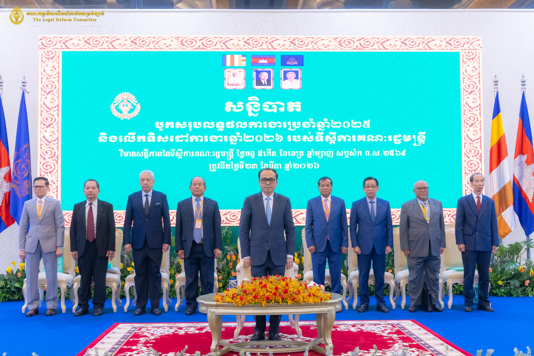 នាព្រឹកថ្ងៃចន្ទ ទី២៣ ខែមីនា ឆ្នាំ២០២៦ នៅវិមានសន្តិភាព ឯកឧត្តម លី ច័ន្ទតុលា អនុប្រធាននិងជាអគ្គលេខាធិការគណៈកម្មាធិការដឹកនាំការកែទម្រង់ច្បាប់ (គ.ក.ច.) អមដោយឯកឧត្តម ប៉ែន ប៊ុនឈា អគ្គលេខាធិការរង គ.ក.ច និងឯកឧត្តម សោម គន្ធា អគ្គលេខាធិការរង គ.ក.ច ព្រមទាំងអ្នកជំនាញការច្បាប់ និងមន្រ្តីនៃអគ្គលេខាធិការដ្ឋាន គ.ក.ច បានអញ្ជើញចូលរួមបើកសន្និបាត បូកសរុបលទ្ធផលការងារប្រចាំឆ្នាំ២០២៥ និងលើកទិសដៅការងារឆ្នាំ ២០២៦ របស់ទីស្ដីការគណៈរដ្ឋមន្រ្តី ក្រោមអធិបតីភាពឯកឧត្តម វង្សី វិស្សុត ឧបនាយករដ្ឋមន្រ្តីប្រចាំការ រដ្ឋមន្រ្តីទទួលបន្ទុកទីស្ដីការគណៈរដ្ឋមន្រ្តី តំណាងដ៏ខ្ពង់ខ្ពស់សម្ដេចមហាបវរធិបតី ហ៊ុន ម៉ាណែត នាយករដ្ឋមន្រ្តីនៃព្រះរាជាណាចក្រកម្ពុជា។ សន្និបាតនេះ មានការអញ្ជើញចូលរួមពីសំណាក់ឯកឧត្តមទេសរដ្ឋមន្ត្រី, ឯកឧត្តម លោកជំទាវ រដ្ឋមន្រ្តីប្រតិភូអមនាយករដ្ឋមន្រ្តី, ឯកឧត្តម លោកជំទាវ រដ្ឋលេខាធិការ អនុរដ្ឋលេខាធិការ អគ្គនាយក លោក លោកស្រី ជាថ្នាក់ដឹកនាំនិងមន្ត្រីរាជការនៃទីស្តីការគណៈរដ្ឋមន្ត្រី និងតំណាងពីក្រសួង ស្ថាប័ននានា ប្រមាណ ៦០០ នាក់។